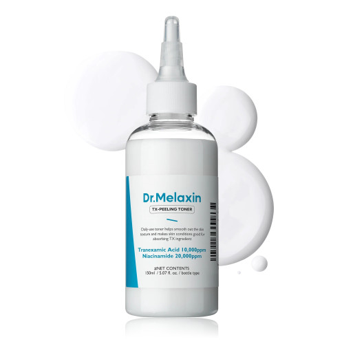 Осветляющий пилинг-тонер с транексамовой кислотой Dr.Melaxin TX Peeling Toner предназначен для борьбы с гиперпигментацией, неровным тоном кожи и мягким отшелушиванием омертвевших клеток.